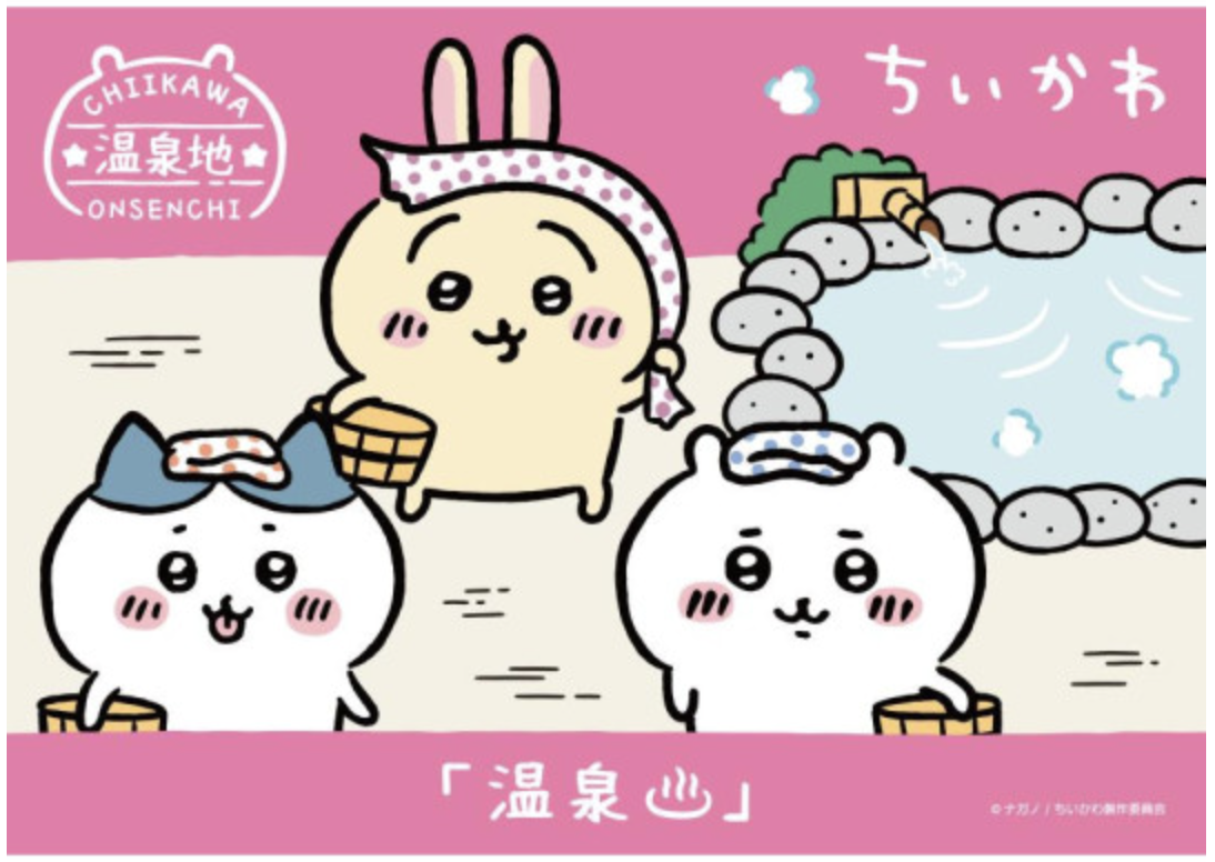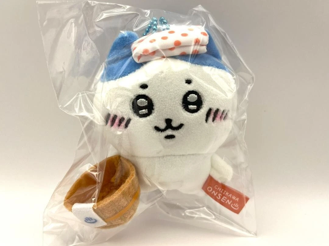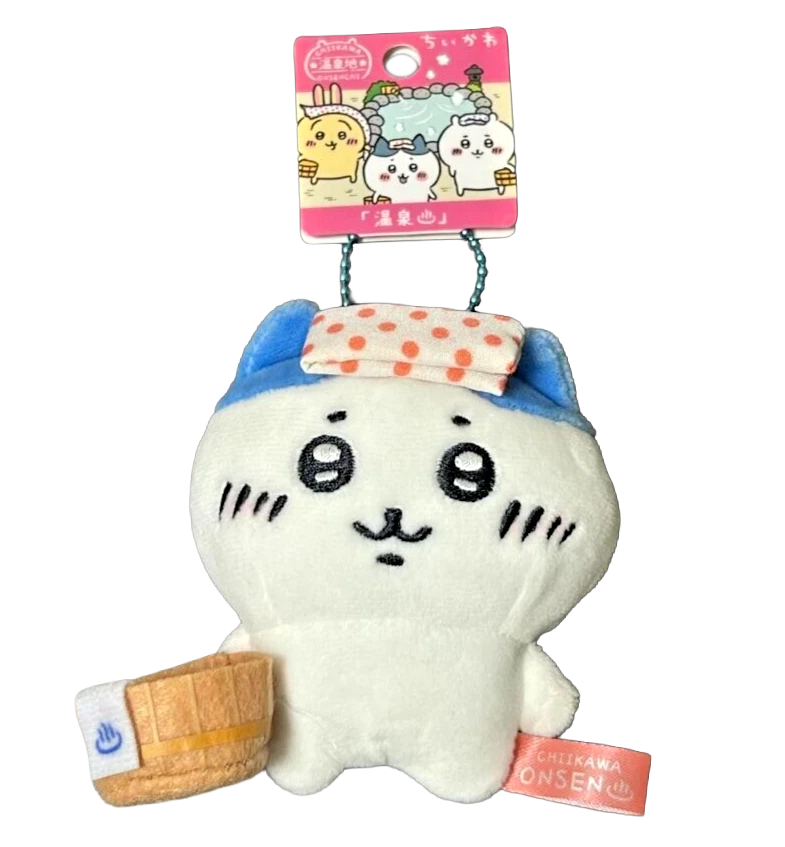 A charming Chiikawa mascot featuring Hachiware in the Hot Spring (Onsen) limited edition, imported directly from Japan.
